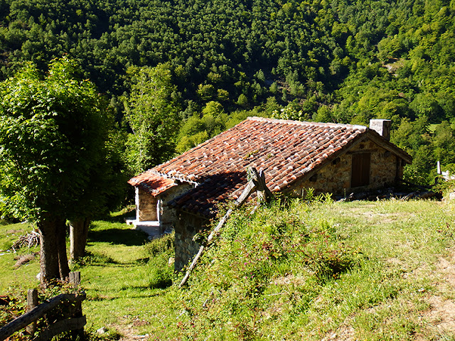 pasamos por Tabláu y Bories, ya dejamos el Río Monasterio, ahora estamos remontando por el Arroyo de Vallines, por Llin de La Gobia