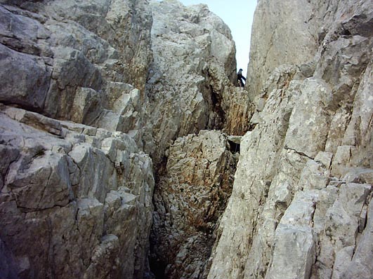 la bajada a la chimenea, es también muy inclinada