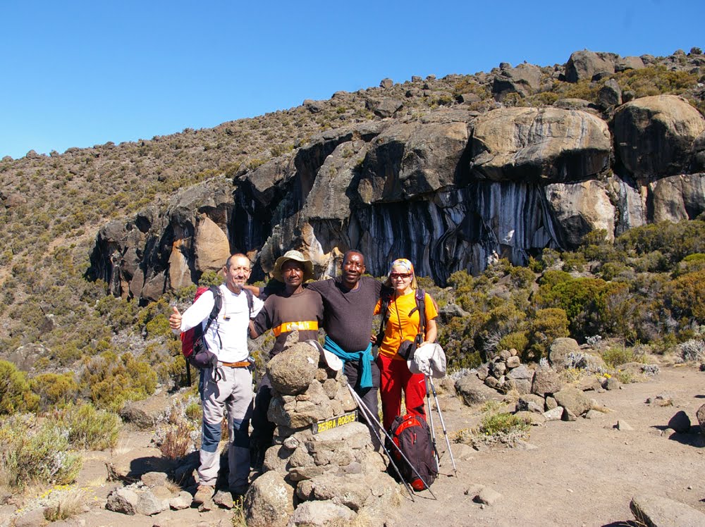 pasamos por Kibo 11:30h y tras aligerar un poco de ropa continuamos descendiendo para bajar hasta el siguiente campamento