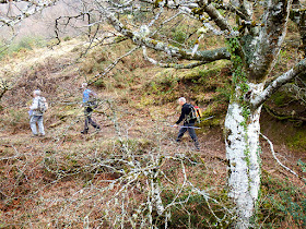 ....tras un giro a nuestra izquierda, entrar en este amplio corredor por el que ascenderemos al hombro de la imagen, terreno bastante incómodo con mucha maleza y sendero prácticamente desaparecido