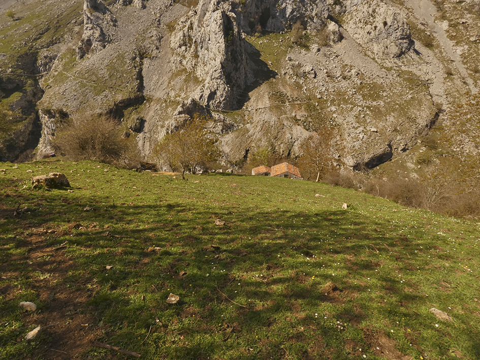 hasta tras una fuerte subida por buen camino hasta Cantiellu, una majada situada en una pequeña planicie tras la anterior subida